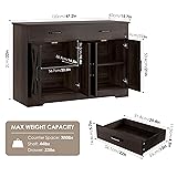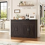 HOSTACK Buffet Cabinet with Storage, 47.2" Kitchen Sideboard Buffet with Drawers, Modern Farmhouse Coffee Bar Station with Shelves, Barn Doors Storage Cabinet for Living Room, Dark Brown