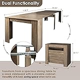 Ultimate Flexibility: This dining table adjusts from 20" to 118", accommodating from 2 to 12 people, perfect for any occasion and space. Space-Saving Design: 118 Long Full-Sized Dining Table folds out to a compact 20" Console, with leaves neatly stored underneath. Elegant Durability: Crafted from engineered wood and smooth-gliding metal rails, with finishes in white, walnut, marble, and oak. Versatile Look: Oak finish blends effortlessly with modern or classic décor. Color Variation Note: Colors may appear slightly different under various lighting conditions.
