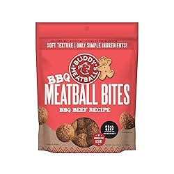 BUDDY MEATBALLS: These bite-sized meatball bite are chock full of beefy, BBQ flavor that your dog will love! Their soft texture makes it easy to break into pieces for smaller dogs. ALL THE GOOD STUFF: Our recipe is free of corn, soy, artificial flavors and preservatives. With Buddy, you can feel good about serving your best bud the treats they deserve! EVERYBODY LOVES BUDDY: Buddy is the perfect companion for your best friend! Buddy's adorable treats and delicious flavors are sure bring your pup joy! Buddy has a range of treats - all made with real, simple ingredients that you can pronounce. BAKED IN THE USA: Buddy Meatball Bites are baked in the USA with US and Imported Ingredients. GREAT FOR DOGS OF ALL AGES: These meaty dog treats are fun to eat and packed with flavor that dogs of all life stages will enjoy!