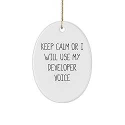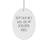 - Are you a developer or looking for a unique Christmas gift for someone who loves coding? Look no further Our Keep Calm Or I Will Use My Developer Voice oval ornament is the perfect way to express their love for development. Made from high-quality ceramic materials, this 3-inch oval-shaped ornament is glossy finished for vibrant image reproduction and comes with a gold-tone string for hanging. This thoughtful gift is perfect for any developer, whether it's for friends, family, or coworkers. Imagine the smile on their face when they receive a gift that shows you understand their love for coding. It comes with a lighthearted and humorous message, making it a great conversation starter. The recipient will appreciate the nod to their developer pride and the humor it brings to their daily routine. This ornament is not just a functional gift but also a thoughtful one. The sender will appreciate the attention to detail and the sentimental value it holds. The recipient will love the unique design and the reminder that they're a big deal in development. Whether you're a developer yourself or just a fan, this gift is sure to bring a smile to their face. So why wait? Get this amazing ornament as a Christmas gift for someone who loves coding and show them you care about their developer pride. Don't miss out and make their holiday season a memorable one!