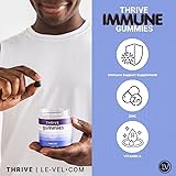 - Sure! Here's a revised version of the product description with a bit more detail, bringing it over 1000 characters: Looking for an easy and delicious way to support your immune system? THRIVE Immune Gummies are a simple, enjoyable addition to your daily routine. Each bottle comes with 60 soft, easy-to-chew gummies, providing you with 30 servings of immune-boosting benefits. Just two gummies a day give you a powerful combination of key vitamins and minerals, including Elderberry, Zinc, and Vitamin A, all known for their immune-supporting properties. These gummies are formulated to help your body maintain a healthy immune response while also promoting overall wellness. Packed with antioxidants, they support your body’s natural defenses and help reduce inflammation, keeping you feeling your best throughout the year. The best part? They taste great, making it easy to stay on top of your wellness goals without any hassle. Whether you're looking to give your immune system an extra boost during cold and flu season or want ongoing support for daily wellness, THRIVE Immune Gummies offer a convenient and tasty solution. Perfect for all ages, these gummies fit seamlessly into your day-to-day routine, helping you feel more confident in your body’s defenses.