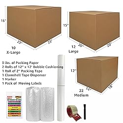 UBMOVE Bigger Boxes Smart Moving Kit #4, Medium, Large & X-Large Boxes, Bubble Roll, Moving Labels, Tape, Dispenser, Packing Paper & 1 Marker, 4-5 Room Kit