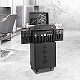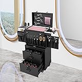 Josbuynls Rolling Makeup Train Case, Professional Makeup Train Case Aluminum Cosmetic Trolley Travelling Cart Trunk with 360° Swivel Wheels&Sliding Drawer for Nail Technician Stylist