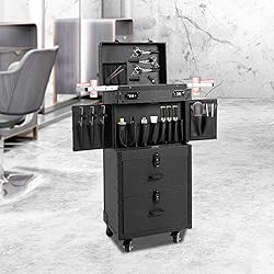 【High-quality Material】: Makeup train case Is Made of High-quality Pu, Wood Board, and Metal with the Electroplating Process, Which Is Sturdy and Durable. 【Large Capacity】: Rolling makeup train case Comes with a Multi-layer Large Capacity and Each Layer Is Built for Storing Different Tools. You Can Use It to Store Your Cosmetics, Hair Dryer, Barber Tools and so on, Keeping Your Tools More Organized. 【Security Guarantee】: Nail cart organizer with wheels Comes with Combination Locks and Key Locks(with Keys) to Securely Protect Your Tools from Falling out of the Case over Bumps and to Prevent Others from Opening the Case. 【Easy to Move】: The Pull bar, Top Handle, and Four Universal Wheels Allow You to Move It Easily Whether You Are Moving Indoors or Traveling for Business or Pleasure. Two of the Wheels Are Equipped with Brakes, Making It Your Mobile Vanity. 【Easy to Assemble】: The Simple Structure and Minimalist Design Allow You to Install professional makeup case in a Breeze, You Just Need to Install the Universal Wheels and Start to Use It.