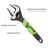 HARFINGTON Adjustable Wrench 8" CR-V Wrench Set Universal Spanner Wide Opening Jaw Phosphating for End and Plumbing Repairs, Black/Green