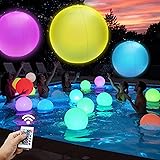 4 Pack Light-Up Beach Balls - 12" Glow-in-The-Dark Pool Toys with 16 Colors & 4 Lighting Modes - Inflatable Floating Balls for Kids' Indoor/Outdoor Fun, Swimming Pool Games and Party Decorations