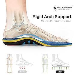 【Heavy Duty Pain Relief Insoles - Stop Pain Killing Your Feet!】Our orthotic insoles are designed for men and women weighing over 220lbs! Orthopaedic insoles relieve the symptoms of plantar fasciitis, flat feet, ankle pain, low back pain, bunions and bone spurs, eliminating any discomfort associated with prolonged standing or walking. WalkHero insoles permit a more confident, stable and relaxed stride. 【Strong Rigid Arch Support - Easy to Stand All Day】Strong arch support is made of lightweight and durable orthopedic arch nylon sheet, while advanced shock absorption technology balances the pressure on the forefoot and heel. High-quality toughness and elasticity provide long-lasting support, helping users weighing more than 220 pounds cope with a full day's work life with ease. 【Cushioning for Shock Absorption - Comfort at Every Step】The insoles feature a full-length, 2mm high-density EVA foam layer, a 3mm high-resilience OrthoLite layer and a super soft PU heel cushioning. This combination provides comfortable cushioning, relieves muscle fatigue and soreness, and allows you to maximize the relaxation of your feet. Start enjoying all-day comfort now! 【Widely Applicable - Get Your Favorite Shoes Back on Your Side!】The insoles are widely used in work shoes, sneakers, casual shoes, and leather boots, designed to match standard shoe sizes perfectly and available in 12 sizes. Each insole is biomechanically designed to provide optimal comfort and improved alignment from heel to toe. WalkHero insoles have proven to be trusted and loved by millions! 【Scientific Wearing - From Fit to Comfort】Initially, some people may feel pressure on their feet as they adjust to the arch support. To ensure a comfortable transition, We recommend wearing them for 2-3 hours a day for 1-2 weeks, gradually increasing the time to allow your feet to adjust. If the product is not suitable for you or you receive damaged or used insoles, please contact our customer service.