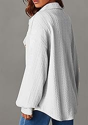 Fabric: Cotton and polyester.Soft and comfy to wear. The fabric is warm. It can be wear at Spring and Fall day. Fashion and comfortable to wear. Features: Long sleeve, button down, lapel collar, loose fit, textured style, solid with pockets. Occasions: Suitable for casual commute, shopping, business outfit, leisure time, daily life, holiday, vacation. Note:Please carefully read the size description we provided in the pictures. Select the size according it. Solid long sleeve button down jacket, lapel collar cotton shirt, loose flap pockets blouse for women.