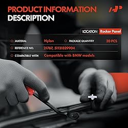 [Vehicle Fitment]: Compatible with BMW 2002 1968-1976, 318i 1991, 318i 1984-1985, 320i 1977-1983, 325e 1984-1987, 325i 1987-1991, 325is 1987-1991, 325iX 1988-1991, M3 1988-1991 [Specification]: Reference Number: 21767, 51131829904; Total Weight: 2.89 oz, Length: 10 mm, Stem Diameter: 28 mm, Width: 21 mm, fit into 8.7 mm hole, Pay attention to the hole diameter to find what you want [Long-Lasting Performance]: These automotive fasteners for rocker panel door are made from high-strength nylon that resists cracking, corrosion, and extreme temperatures [Supports Bulk Installation]: These push-in retainer clips snap securely into place without tools, holding linkage rods firmly, ensuring smooth operation, and reducing looseness and unwanted movement [Buy with Confidence]: A-Premium offers a one-year unlimited-mileage guarantee on our meticulously crafted retainer clip fastener. We offer a wide variety of automotive accessory categories, ensuring that you can hit the road with peace of mind