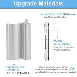 - Aluminum alloy shower door handle: This aluminum alloy frameless shower door handle is suitable for built-in shower doors, shower door handles, and impact-resistant door frames. It features a polished aluminum alloy surface finish with smooth edges, combining aesthetics with durability. Applicable glass thickness: Aluminum alloy shower door handles are suitable for 1/8-inch, 5/32-inch, 3/16-inch, and 1/4-inch glass. The included black rubber ring is ideal only for 1/8 inch glass. The included seal ring and shower door handle are not suitable for glass thicknesses other than the specified thickness. Stainless Steel U-Channel Magnet: These shower door replacement parts are perfect for a glass shower door catch. Before beginning installation, please remove any leftover debris, rust, or glue from the door track. Then, remove the old, rusty magnet and place the new one on top to complete the installation. Shower door magnet: Made of high-quality material, screened and tested in multiple processes before leaving the factory to ensure durability. The magnet is mighty and can hold the door securely. Packing list: Glass shower door handle replacement kit, aluminum alloy frameless shower door handle * 1, 1/8-inch black rubber seal * 1, stainless steel U-shaped groove magnet * 1, screws and nuts * 2.