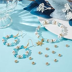 - Beebeecraft Crafted Only For You Beebeecraft 1 Box 100Pcs Rhinestone Spacer Beads Real 18K Gold Plated Small Wavy Hollow Flower Beads Charms Connector for Jewelry Making Bracelets Necklace Earrings Beading Accessories Craft 6mm Material: 18K Gold Plated Brass Feature: 18K GOLD PLATED BRASS: Wave flower spacer beads are made of 18k gold plated brass , each bead exudes a luxurious golden lustre. not fade easily, making your jewellery design more attractive and durable WAVY FLOWER DESIGEN: Unique wavy flower design shows a modern and classic aesthetic feeling. The rhinestones embedded around it not only enhance the visual effect, but also emit dazzling luster at every angle 100PCS IN A BOX: 100pcs wave flower spacer beads: 0.24 inch (6mm) in diameter, 0.12 inch (3mm) thick, hole: 0.04 inch (1mm). Packed in a transparent plastic box, easy to store and carry, not easy to get dirty WIDE APPLICATION: Spacer beads are suitable for a variety of jewellery diy projects, whether you are making bracelets, necklaces or earrings, they will fit perfectly into your design. They come in sizes and shapes suitable for use with a variety of gemstones and pearls, offering endless possibilities for your jewellery creations GENTLE GIFT: On valentine's day, christmas, new year, birthday and anniversary, you can use aesthetic beads to make some exquisite handicrafts as gifts for your family, girlfriend or boyfriend, friends. Bring them surprises and good wishes