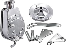 - Specification: Direct Replacement. Strict quality control standards to Build and test. Replace fit for Saginaw Style Power Steering Pump Chrome Plated Reservoir & Dipstick Cap Compatible with Small Block Chevy Engines Long Water Pump 283 - 305 - 307 - 327 - 350 - 400 Replace Keyway style 5/8" shaft-5/8" Inverted flare pressure hose inlet (adapter required if using metric hose) Compatible with Small Block Chevy Power Steering Bracket Chrome plated steel 283 - 305 - 307 - 327 - 350 - 400 Long Water Pump Includes all hardware and brackets Chrome plated steel V- belt pulley 5-3/4" diameter Features: High Quality Easy installation Simple operation Package Include: Chrome Power Steering Pump and Bracket and Pulley Kit
