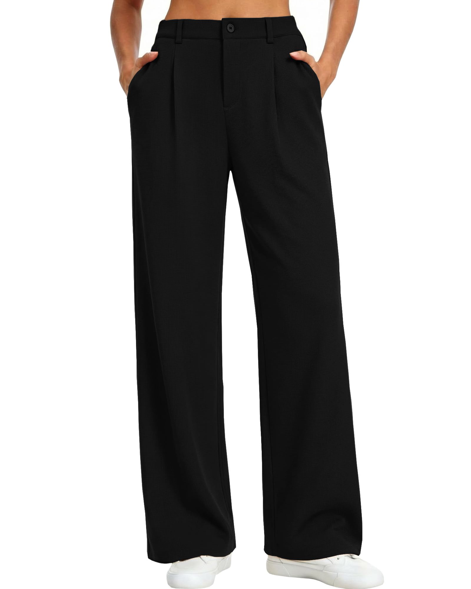 Feiersi Womens Casual Wide Leg Pants High Waisted Button Down Straight Long Trousers Palazzo Pants