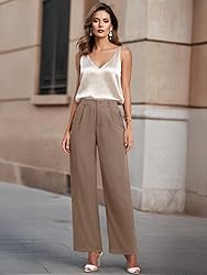 - Feiersi Womens Casual Wide Leg Pants High Waisted Button Down Straight Long Trousers Palazzo Pants Material: 70% Rayon+30% Polyester.Super soft, lightweight, skin-friendly and comfy, breathable to wear for spring and Summer and Fall. Unique design: Button and elastic waist design, wide leg,loose fit, deep side pockets, high waisted wide leg pants for women.This wide leg pants for women fit more women than normal pants for its design. It will work even If you are curvy or have thick calves and thighs.The elastic waist design allows your waist to be more free. Easy to match: You can pair with crop top, tank top, sandals, slippers, straw hat, sunglasses to make a casual comfy style, or pair with high heels to make a chic look.You can wear it for work or casual--Pair it with different tank tops or bodysuits then you can easily get a chic look! Occasions: Suitable for cocktaill, party, club, daily home wear or going out,club, bar or casual etc.