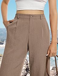 Size Guide&Garment Care: We strongly suggest that you have your body measurements taken first, and then Then please refer to the size chart on our detail page before ordering.(Loose fit design, normal size can be worn in a baggy style, or we recommend sizing rise for a better fit).This wide leg pants please wash by hand or machine with cold water, Do not bleach; Do not wring or twist; Hang to dry Features:Button and elastic waist design, wide leg,loose fit, deep side pockets, high waisted wide leg pants for women.This wide leg pants for women fit more women than normal pants for its design. It will work even If you are curvy or have thick calves and thighs.The elastic waist design allows your waist to be more free Convenient Side Pockets: The pockets are practical and cute, deep and roomy enough to hold your hands, phone, wallet, keys, etc. You can free your hands when you're out and about, whether you're running, going to the beach, or just hanging out with friends Matching: You can pair with crop top or tank top to show your curves and flatters your body, or pair withsandals, slippers, straw hat, sunglasses ,high heels to make a chic look Occasions: These lightweight and flowy pants are perfect for the hot summer. They can be dressed up for a date night or worn as casual office wear. They're great for long work and school days and also an excellent choice for trips and beach vacations