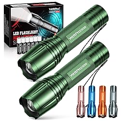 WdtPro LED Flashlight High Lumens SR2000 Pro, 2 Pack Brighter Tactical Flashlights with 5 Modes & Zoomable, Powerful Mini Flash Light for Emergency, Camping, Hiking (Green)