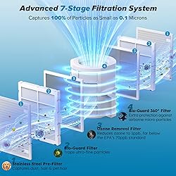 - Nuwave Forever Smart Air Purifier for Home, Never Replace Air Filter System, Patented 7-Stage Filtration, Cleans Large Room up to 2,002 Sq Ft, Adjustable Flow Panel, Washable & Reusable Filters