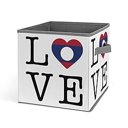 YXPXODEF Laos Flag Love Collapsible Storage Bins 10.6" Fabric Cube Baskets for Closet Shelf Nursery Toy Storage