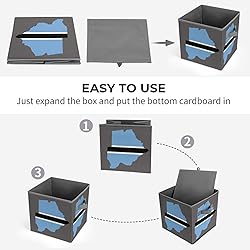 YXPXODEF Botswana Flag Map Foldable Storage Bins 10.6 Inch Fabric Cube Baskets with Handles for Closet and Shelves