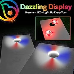 INCLUDES 4 CORNHOLE BAGS - This bundle includes one pack of four LED-enhanced BagBrightz. Visit our BagBrightz page to select an additional pack in blue, red, or white, and complete your eight-bag set tailored to your team spirit NIGHTTIME CORNHOLE MASTER SET - Light up every aspect of your game with RingBrightz LED ring light and BagBrightz LED cornhole bags, ensuring vibrant, illuminated gameplay that extends well into the night DYNAMIC & DURABLE GAMEPLAY - Experience uninterrupted fun with weatherproof and robust BagBrightz that match the endurance of our RingBrightz, both crafted to withstand diverse outdoor conditions for consistent play WEATHERPROOF DESIGN – Built to withstand outdoor conditions, our LED cornhole board ring lights are durable and weatherproof. They'll keep shining bright through all your outdoor gatherings and backyard barbecues IDEAL FOR EVERY EVENT - Perfect for backyard barbecues, tailgate parties, and outdoor family gatherings, this bundle ensures that your cornhole game is the highlight, day or night, adding a glowing touch to every toss
