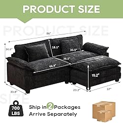 Super Comfy Cloud Couch: This cloud couch sofa sectional features 11 inches 2-layer thickened seat cushions with high-resiliency foam to provide you a soft and cloud-like feeling, making it perfect for entertaining or relaxing Spacious Seating Space: With its extra-wide and 26.5" extra-deep seat design, the soft cloud sofa offers a generous seating space, whether you’re entertaining guests or enjoying quality time with family, everyone can find a cozy spot on the cloud couch Pillow Armrest: The armrest of the sofa sleeper is like a pillow, so when you are lying down and taking a nap, this sofa armrest will perfectly match your neck, providing you with an unbelievably comfortable relaxing experience Throw Pillow Included: Each seat of the deep sectional sofa is equipped with a matching pillow, providing a cohesive and stylish look while ensuring every moment spent on it is comfortable and supported Morden And Elegant: The cloud couch is available in premium chenille fabric, the sleek look is complemented by sofa colors for a sophisticated modern style and a warm, cozy atmosphere, making this sectional sofa beautiful and comfortable Easy Assembly: The sleeper sofa comes with clear instructions and all the tools to help you assemble it easily. Enjoy the fun of assembly with your partner Please Note: There may be slight color differences due to light or monitor. And all cushions of the cloud couch are shipped in vacuum packaging, please pat the cushions and wait for a period of time to fluff up