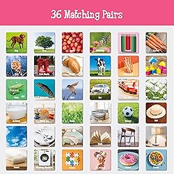 - Hebayy is an experienced household goods supplies producer and aiming to provide the best quality and user experience. 72 Thickened Tiles: It it a fun and engaging matching game, featuring 72 cards with 36 unique designs of daily items. Double-sided design makes you have different ways to play. One side printed with vibrant patterns, another side is blank, you can draw pictures you want on it and make a new game by your imagination. Matching Game & Memory Challenging: This game combines the joy of matching with the thrill of memory challenges! Children will flip over cards to find pairs, sharpening their memory and focus as they play. The game encourages logical thinking and pattern recognition while boosting their confidence with every correct match. Safety And High Quality: Made of thickened cardboard for durability, neither bend nor fold. Printed with non-toxic plant ink, which will not release harmful substances. The round and smooth edge is harmless, suitable for small hands. Also, it is easy clean with a damp cloth. Each card measures 2” X 2”. Fun & Attractive Theme: With a collection of everyday items like car, umbrella, pencil, toothbrush, tableware and more, this game introduces children to commonly used items, animals or food in a fun and memorable way. The daily items theme helps kids connect what they see in the game to the real world around them. Ideal Gifts: This daily items memory matching game is a perfect choice for birthdays, holidays, or any special occasion. It's a wonderful present for kids aged 4 to 6, offering both entertainment and learning, whether for family game time or solo play.