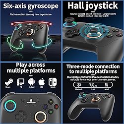 - RG P01 Wireless Gaming Controller RG P01 Controllers Gamepad for PC Plug and Play Gaming Gamepad with Hall Effect/Triggers Joystick rg p01 Game Controller Switch/PC/Steam/Android/IOS(Black)Long battery life and comfortable design: RG P01 Wireless Gaming Controller is built-in 600mAh large-capacity battery, support up to 9 hours of gaming time, fully charged 2.5 hours. The PC controllers gamepad can be charged via a Type-C cable and can be played while charging. Back with 2 MACRO programming keys, 1 continuous transmission setting key, software ABXY layout exchange, support wired upgrade.Immersive gaming experience: The RG P01 pc gaming controller is built-in RGB stick light effect, with Hall trigger and Hall stick. Give you a good visual experience, and wireless game controllers is built-in six-axis gyroscope, with double asymmetric pendulum motor, vibration intensity adjustment, you can feel the real experience of the game collision, vibration, shooting and other scenes. Give you a good game experience from all senses.Support a variety of platforms and a variety of connection methods: RG P01 wireless gampad controller supports Switch, PC, Steam, Android and IOS, and the portable PC controller supports 2.4G wireless transmission technology, Bluetooth, wired three connection methods, with signal stability, strong anti-interference, long connection distance, eliminate delay and other characteristics.Plug and play convenience: The RG P01 Wireless Gaming Controller is easy to set up and play in real time without additional drivers. Multiple connection options are supported. Simply press the specified button to switch between different modes and seamlessly connect to your gaming controller. You are free to enjoy games with your friends and family anywhere at any time, at home, traveling, and family gatherings, and are perfect for gifts to friends, children, and husbands.