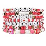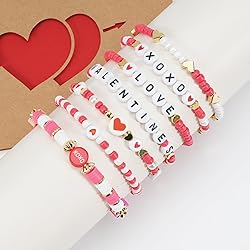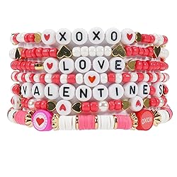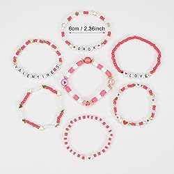 - ★ About Valentine’s Heart Charm Bracelet: Express your love or treat yourself with romantic beaded bracelet this Valentine’s Day. Consist of pink red polymer clay and glass beads, imitation pearls and artifical crystal beads strung on elastic cord, with sweet heart xoxo love charm adorned, symbolizes forever love and passion. Wear them together or layer with other stretch bracelets for a sweet outfits. ★ About Item Specification: √Material:Polymer clay,Alloy, Acrylic,glass,artifical crystal √Color: Red, Pink. √Occasion: Valentine’s Day, Birthday, Party, Wedding, Anniversary, Holiday, etc. √Package Includes: 1set Beaded Bracelet.