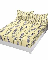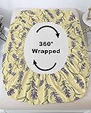 Watercolor Flower Lavender on Yellow Fitted Bed Sheets Full Size Fit 5-16inch Deep Pockets,Luxury Bottom Sheet Bedding Set with Pillow Case,Seamless Iris Floral Leaf Fitted Sheet for Mattress