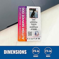 - Service Animal ID Card – Durable & ADA-Compliant Identification for Service Animals and Handlers Ensure your service animal is easily identifiable and ADA-compliant with this professional Service Animal ID Card, designed to help you and your animal access public places with confidence. Made from thick, hard PVC, this ID card is water, wear, and tear-resistant, providing lasting durability in any environment. Each card is fully customizable with details unique to your service animal, such as their name, species, breed, microchip number, and registration number. Choose from 14 different headers tailored to specific service types, including Service Dog, PTSD Service Dog, Guide Dog, Allergy Detection Dog, Autism Service Dog, Emotional Support Animal, and more. The card and information adhere to ADA guidelines, supporting your access to various public locations. Along with the physical card, you’ll also receive a unique digital version. This digital ID is accessible on NationalAnimalRegistry.com with a dedicated registration number, offering an added layer of verification.