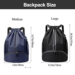 Package Included:This bundle includes a large drawstring bag and a meduim black drawstring backpack, providing versatile storage options for all your athletic needs Waterproof Material:Made from durable waterproof material, these bags include a shoes compartment and a separate waterproof pocket for wet items, keeping everything organized Drawstring Closure:With a user-friendly drawstring closure, accessing your belongings is quick and easy. Simply pull the strings to secure your items and be on your way—ideal for those on the go Upgraded Shoulder Straps: With specialized wider sports drawstring, this gym backpack provides ultimate comfort and support. It is very comfortable to carry even when fully loadede heading to the gym or embarking on a weekend adventure Dry/Wet Separation: Our gym bag is designed with multi-pocket. There have independent shoes compartment and wet proof inner pocket, which makes it convenient for gym-goers, swimmers, and anyone who needs to keep their gear separated and organized
