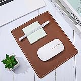 Mouse Pad Size: Package includes 1pc leather mouse pad, 7.91 x 9.49 x 0.1 inch(20.1 x 24.1 x 0.25cm) Cowhide Material: Made of genuine cowhide material, durable and soft, comfortable to touch, prevents the pad from slipping around on your desk Unique Outlook: Mouse pad with stitched edge not only beautiful, but also ensure that surface matched with different types of mouse, easy to clean, provide a comfortable working atmosphere Great Gifts: The mouse mat makes an excellent gift for your friends, family, classmates, colleague Widely Used: The mouse pad is suitable for all types of mouse including wired ones, wireless, mechanical, fine workmanship, anti slip bottom, great choice for work, study