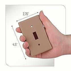 - Bates light switch plates are single-gang toggle switch covers available in a value 10-pack, ideal for both residential and commercial applications.Made from durable thermoplastic, they are resistant to cracking, fading, and discoloration, ensuring long-lasting performance.Each plate measures 4.5 inches by 2.76 inches, offering a precise fit for standard electrical boxes.The elegant mocha brown finish adds a warm, modern touch that complements a variety of interior styles.Designed for ease of installation, each plate comes with matching screws for a clean, professional result with minimal effort.