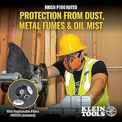 Klein Tools 80180 Reusable P100 Half-Mask Respirator with 4 Replaceable Filters for Dust, Metal Fumes, and Oil Mist, M/L