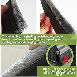 - 【High Quality Materials】The door brush bottom sweep is made of high-quality silicone and wear-resistant nylon brush with exceptionally strong adhesive, not easy to be deformed when using, high resilience and has a longer service life. Suitable for any floor, especially carpets, uneven floors, gum floors, and painted floors. The door draft stoppers for bottom of door will not damage your floor. Size: 2” W x 39” L 【More Useful for Dust/Noise/insects/Small Animal】This practical door draft stopper with brush blocker measures 2 inches in height with a 0.4 inch brush length to effectively prevent dust accumulation while reducing noise. Additionally, it acts as a barrier against insects and small animals attempting to enter through the bottom of the door. Bring you a quiet and clean home life. 【Protect the Door and Floor】Unlike other door stoppers, this brush of this door bottom seal strip features a thick, long, and high-density brush that effectively safeguards your floor and carpets. This door sweep for bottom of door is quite quiet when dragged over the floor because of the brush design, The door soundproofing strip can effectively reduce noise, Say goodbye to unwanted sounds and embrace a more peaceful home environment 【One Step to Install】This door brush bottom sweep has self-adhesive super glue and integrated brush design, it is so easy to install it, just cut it to the right size according to the length of the door, then peel off the adhesive and stick it to the door! This door sweep for bottom of door suit many doors such as screen door, glass door, wood door, slide door, you will find this under door draft stopper can use widely 【Save Money and Energy】In winter and summer, door draft stopper is good home improvement item which can blocks thermal bridges effectively. This door draft stoppers for bottom of door prevents air conditioning and heating leakage, providing effective hot or cold air insulation to maintain a comfortable room temperature. By preventing energy loss, it helps you save money and while ensuring optimal comfort, contribute to the global environment 【Warm Tips】1. In cold weather, we recommend to heat the adhesive for 2 minutes by Hair Dryer before installation. 2. The brush door sweep may not work well if the wall surface is rough or with texture. 3. Please make sure the surface is dry and clean before installation. 4. Please press the door caulk several times after the glue sticks and leave it for 24 hours