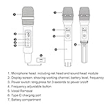 Dual Cordless Microphone, DSP Technology UHF Dynamic Handheld Mic for Smartphones Tablets Computers Ideal for Streaming Recording and Karaoke