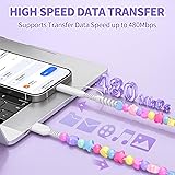 - VOFUOE Colorful Beaded Designs 2 in 1 Multi Charging Cable USB A to USB C Cable USB A to phone Cable This 2-in-1 charging cable is ideal for solving your multiple device charging and data transfer needs. It integrates both USB A to iOS and USB A to Type C ports, enabling you to easily connect your multiple devices. For example for iPhone 16/16 Pro/16 Pro Max, for iPad 10th/9th/8th/7th Gen, for iPad Pro, for AirPods, for Galaxy S24 Ultra, for Google Pixel 4a and more! This vibrant USB C charging cord is a delightful fusion of functionality and style. Crafted with a whimsical design featuring an array of candy-colored stars, hearts, and spheres, it adds a playful touch to your charging experience. These vibrant beads wraps around your USB c cables to prevent fraying and tangling. With its fast charging feature, you can power up your devices quickly and efficiently. The usb c cable is made of high quality wire to ensure the stability of data transmission and charging efficiency. At 3.3 feet (1 meter) in length, it offers ample reach for convenient use. Its eye-catching appearance brings a touch of joy to your everyday routine. Whether at home, work, or on-the-go, this charming cord is a practical accessory that doubles as a charming decorative piece.