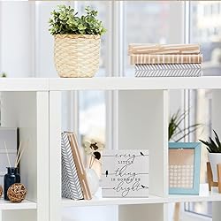 Wood Box Sign Dimension: 5x5 inches, the small size makes the square wooden sign lightweight, doesn't take up space, and easy to put anywhere you want. Decorative Wood Box Sign Material: This wooden box sign is made of high-quality wood materials and has a natural rustic charm. Its also has good texture, not easy to deform, eco-friendly, durable and strong. Idea Gift: This home decor is a great choice for friends, family, coworker, teacher, boss, employee, grandma, grandpa, mom. It can be used as a housewarming gift on thanksgiving, birthday, Mother's Day, Halloween, Father's Day, Christmas, wedding day and more! Applicable Space: This rustic wooden box sign stand freely on anywhere. It is an ideal decor for home, office, farmhouse, living rooms, bedrooms, kitchens, bathroom, coffee bars, house, and can be used as desk decor, table decor, tiered tray decor, counter decor. This exquisite wooden plaque sign consists of beautiful patterns or interesting, encouraging language, elegant and beautiful, to bring a warm atmosphere to your home life.