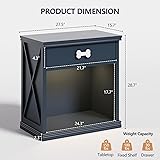 RLRO Cat End Table, Dog Crate Table Hidden Litter Box Enclosure with Drawer, Cat Side Table Storage Cabinet with Light and Pet Bed, Dog Kennel End Table, Nightstand for Bedroom, Living Room