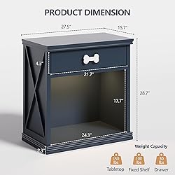 - Product Features This nightstand features a unique design that provides your pet with a comfortable resting place while perfectly blending with your home decor. This multifunctional cat end table is not just a cat bed side table; it can also serve as an indoor cat crate, offering a safe and cozy space for your home. This dog crate furniture comes with a thoughtful storage drawer to meet your pet's needs and assist with home organization. You can store pet accessories like leashes and toys, or keep personal items close at hand. Specifications Product Dimensions: 15.7" L * 27.5" W * 28.7" H Weight: 37 lbs Package Dimensions:33" L * 19" W * 10" H Package Weight: 42 lbs