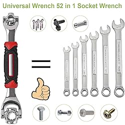 - 【Double-ended Universal 48 in 1 Socket Wrench】Applicable for multiple models, work with spline bolts, 6 point, 12 point, torx, square bolts, damaged bolts and any size standard or metric bolts, Metric socket: 8-10-11-13-14-16-17-19mm; British socket: 5/6"-3/8"-7/16"-1/2"-9/16"5/8"-11/16"-3/4". Compact and portable, It shows on the universal wrench with numeric etchings to show the corresponding sizes 【Universal Socket Wrench】The llave universal 48 en 1 with 360-degree rotating head, only simply flip the tool around and you'll have the right tool at your fingertips for every job! You don't need multiple socket wrenches or large tool kits. No more lugging around heavy tool boxes. It’s a perfect universal socket wrench tool to be taking on a bike or car 【360° Different Size Ratchet Wrench】Unlike other wrenches, this universal wrench 48 in 1 lets you work at a 45° angles to fit nuts. Allows you to install nuts and bolts at different tilt angles, easily accessing tight areas while allowing you to use more force to turn the wrench. Take one home. It's your all-purpose helper when you need it 【Hige Quality Material】The universal 48 in 1 wrench made of chrome-vanadium steel, The same material with tank tracks plate. High hardness, corrosion resistant and durable. Equipped with non-slip handles, it is comfortable to hold and reduces hand fatigue, which helps to improve work efficiency. The handle has the perfect sized grip to keep your hand on tightly without slipping 【Versatile Use】The lightweight and portable design of this 48 in 1 universal socket spanner wrench makes it suitable for automotive repairs, home repairs, furniture assembly and more.The 48 in 1 universal socket wrench is designed to tackle all your projects at home, in the store or at work. The warranty period is one year, please feel free to contact us if you have any questions after purchase, we will solve the problem for you within 24 hours! Looking forward to our cooperation!