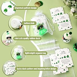 Ample Quantity for Generous Gestures: this St. Patrick's Day gifts set emanates the Irish mood with its ample quantity of items, including 50 ducks (3 styles), 50 cards, 50 duck hats and 50 organza bags, providing you with sufficient quantity to celebrate in Irish style.The products needs to be assembled Well Sized for Convenience: our shamrock rubber ducks and accessories have been designed to keep convenience in mind; The ducks stand 2 inches tall, the paper cards are about 3.74 x 2.95 inches, and the bags are about 5.12 x 7.09 inches Authentic Nod to Irish Festivities: the comprehensive St. Patrick's set, featuring green and white ducks, designed to show the mood of the Irish festival; Each element in the set resonates with the fun and energy associated with St. Patrick's Day Superior Material for Polished Aesthetics: the ducks comprise rubber, the cards are made of paper, and the bags from organza, signifying a commitment to excellent material quality Varied Functions to Elevate Celebrations: each component inside the St. Patrick's Day package serves diverse functions, adding more vibrancy and efficiency to your celebrations