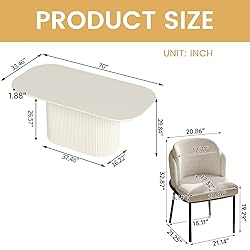 GlimBiz 70" White Dining Kitchen Table Set,Rectangular Kitchen Table with 6 Fabric Chairs,Large Modern Dinner Table with Rounded Corners for Dining Room,Home Office,Living Room,Cream White