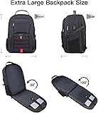 【100% Lifetime Warranty】: Large backpack dimension: 22'' x 15'' x 11''. Our extra large backpack has lifetime warranty and 7*24 hours friendly customer service. Travel backpack for men, Sturdy extra large 18.4 inch laptop backpack, TSA friendly large travel backpack with USB port, carry on anti-theft college bag is perfect for weekend, shopping, work, business and outdoor activities. It's a great gift choice for men and women, you deserve it! This item is NOT intended for use by 12 and under 【Large Capacity & Multi Compartments】: The extra large backpack has a 55L capacity and carries multiple pockets with plenty of storage space for both large and small items. This extra large backpack can accommodate lots of stuffs like college supplies, travel accessories, clothes, stationery, notebook, cord organizer. Front compartment with zipper pockets can put your pens and small accessories, two small elastic mesh side pockets can hold travel gear umbrellas or water bottles 【Waterproof & USB Port】: The big backpack is made of high quality polyester fabric with nylon lining for better water resistant, which can be protected in rainy days. Travel backpack can provide leak-proof protection for items, anti-theft zip pocket in the back of 55l backpack could protect your valuables such as key, cash and valuable items. The USB charging port allows you to charge your phone or other electronic devices such as headphones. (Note: Power bank is Not included) 【Sturdy & Breathable】: This 18.4 inch laptop backpack is designed with a comfortable air-flow foam cushion on the back, allows you to carry your bag for a long time and protects your shoulders effectively. The texture of the travel backpack for men is soft and Sturdy, the unique breathable design gives you a full and comfortable experience 【TSA 180° Opening Design】: The mens large backpack for travel has a friendly TSA design. The TSA travel backpack can be easily opened 180°. The TSA design makes it easier for the extra large backpack to pass through airport security, allowing you to save time at the airport and enjoy a pleasant and relaxing air travel. This travel backpack for men is the best choice for office workers on business trips. As long as you have the need to go out, this large backpack for travel is a good choice