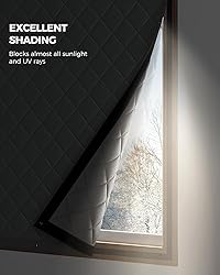 Keep Draft Out: the thermal window curtain is designed to keep heat in your room and make a huge difference in the temperature. With the feature of windproof, waterproof, sound reduce, blackout, and keep privacy, the blanket blocks the cold air from coming into the room in winter, also keep warm air out in summer Durable Quality: Crafted with heavy-duty quilted insulation, it features high-density waterproof Oxford cloth. The liner is double-layered thickened cotton, and highly effective at resisting cold. Make a change by heating that side of the house this winter Unique Roll-up Design: Thermal insulated cover have 2 sticky strips on top so that you can roll up the curtain to see outside view, When rolled down and looped attachments connect, giving a nice tight seal around the window so that the house isn't losing heat Easy Installation: The curtain has sewn-on loop strips, and the kit includes adhesive hook tape for placing around the window. You just place the curtain up with the hook and loop sides adhering to each other. There are also grommets on the curtain, and thumbtacks are provided to secure it further