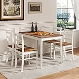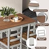 Perfect for Cozy Dining Moments: Enjoy delightful meals with family or friends with this 5-piece kitchen table and chair set, which includes a rectangular dining table and 4 wooden chairs, providing a stylish and comfortable addition to your home Spacious and Stylish Tabletop: The generously sized 45" x 28" tabletop offers ample space for meals and decoration. Coated with acacia veneer, it is easy to clean with a damp cloth, making it perfect for displaying dishes and flowers Sturdy and Stable Construction: Crafted from solid rubber wood, this dining table set ensures durability and support. The table can hold up to 200 lbs, while each chair can support up to 331 lbs. Plus, non-slip foot pads protect floors from scratches Space-Saving and Ergonomic Design: Optimize your living space with this dining set as the chairs can be neatly tucked under the table when not in use. The chairs feature wide, comfortable backrests for ergonomic support, making them ideal for small dining areas or apartments Versatile and Charming Decoration: Match any decoration theme with this kitchen table set, featuring a stunning wood veneer with a brushed finish. Suitable for kitchens, dining rooms, restaurants, and tea rooms, this set adds a charming vintage look to your space
