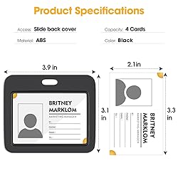 Horizontal Sliding ID Badge Holder with Clear Window Black ID Card Protector Pouch for Office School (Black, 4 Pack)