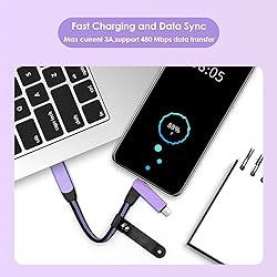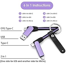 6 in 1 Multi Cable This USB C multi charging cable is designed with 6 in 1 multi-function charging cable, just this one multi charger cable is all you need for your daily charging needs, it has 2 input connectors: USB C and USB A, and 3 output with Type-c/Micro USB/iOS Port Connectors, can charge most of your devices Keychain Design The short multi charging cable is designed with keychain, it is lightweight, portable and easy to carry, you can hang it on your keyrings or backpack for emergency use, no need to carry any other cables when you are in a car, office, home or traveling Fast Charging and Data Sync The PD 60W charging cable max current 3A, support fast charging, it not only can charge your device, but also support 480 Mbps data transfer, got all you need to charge and transfer data for Android/IOS devices, it also supports phone to phone charging (The phone needs to support OTG function) Sturdy & Flexible The keychain charging cable is made of high strength, good toughness nylon braided, which is sturdy and flexible, not easy to break Say Good Bye to Messy Cables If you are suffering to a lot of data cables when traveling, this 6 in 1 multi charging cable can be a good choice for you. No need to carry a lot of cables, only 1 cable can charge most of your devices, it is very useful in a variety of situations, replacing several individual dedicated cables