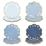 AimFun 48 Pcs Dusty Blue Party Plates Gradient Blue Dessert Paper Plates 7inch Gold Foil Scalloped Edge Disposable Cake Plates for Tea Party Birthday Bridal Baby Shower Wedding Party Supplies