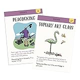 - GRASS IS GREENER - A relatable card game for suburban dwellers where you are rewarded for beautifying your yard and sabotaging your neighbors’ all for the sake of winning Yard of the Month! The object of the game: Get the most points to win Yard of the Month! EARN POINTS BY IMPROVING YOUR YARD! Improvement Cards (blue) add points to your yard and make it look good for the HOA! GET A LEG UP BY SABOTAGING YOUR NEIGHBORS! Impairment Cards (red) subtract points from yards and should be played on OTHER neighbors! Petty Scheme Cards (yellow) are single use cards that cause neighbors to discard cards, let another neighbor look at their hand, or even destroy all cards on a single plot! These are FUUUUN. Garage Cards (purple) are multipliers for various cards in your yard, as well as forms of protection against petty schemes and sabotages! BROWN NOSE THE HOA and play to their likes and dislikes to earn extra points! HOA Board Member Cards affect all neighbors’ final score. Play the game with their likes and dislikes in mind for extra points. This can be the difference between winning or losing! The neighbor with the most points (and best yard) wins! Easy to Learn, Quick to Play! It takes about 5 minutes to learn the rules, and gameplay lasts 20-45 minutes. Loads of Replayability. Replayability is built into the game thanks to our trusty board of HOA Members! Finally, something good is coming from the board. Family-friendly. Listen, I bet you can get grandma to play this one with you. Tell her about the flowers and gnomes. Humor-based Each card is filled with relatable commentary about suburbia.